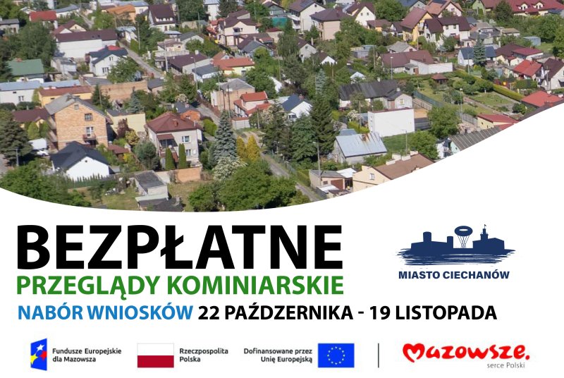Mieszkańcy Ciechanowa mogą skorzystać z bezpłatnych przeglądów kominiarskich w jednorodzinnych budynkach mieszkalnych. Zainteresowani mogą złożyć w ratuszu wnioski o przystąpienie do programu w ramach projektu realizowanego przez miasto „Mazowsze bez smogu”. Nabór chętnych potrwa od 22 października do 19 listopada.