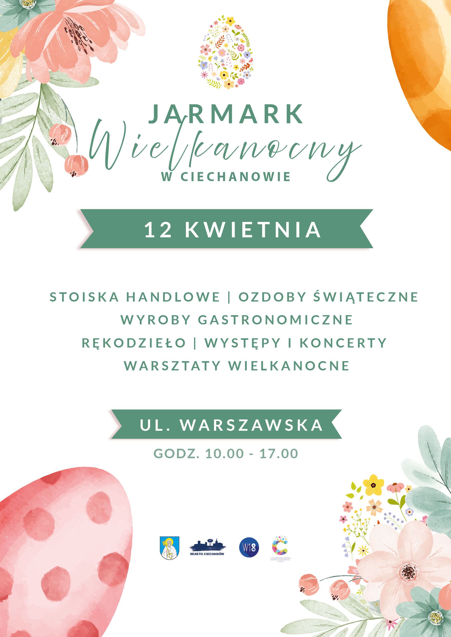 12 kwietnia na ul. Warszawskiej będzie można kupić rękodzieło, wielkanocne przysmaki i drobne upominki. Stoiska z wielkanocnym asortymentem będą czynne od godz. 10.00 do 17.00. Na scenie wystąpią lokalni artyści i zespoły. W Kamienicy W18 zorganizowane zostaną warsztaty rękodzieła.