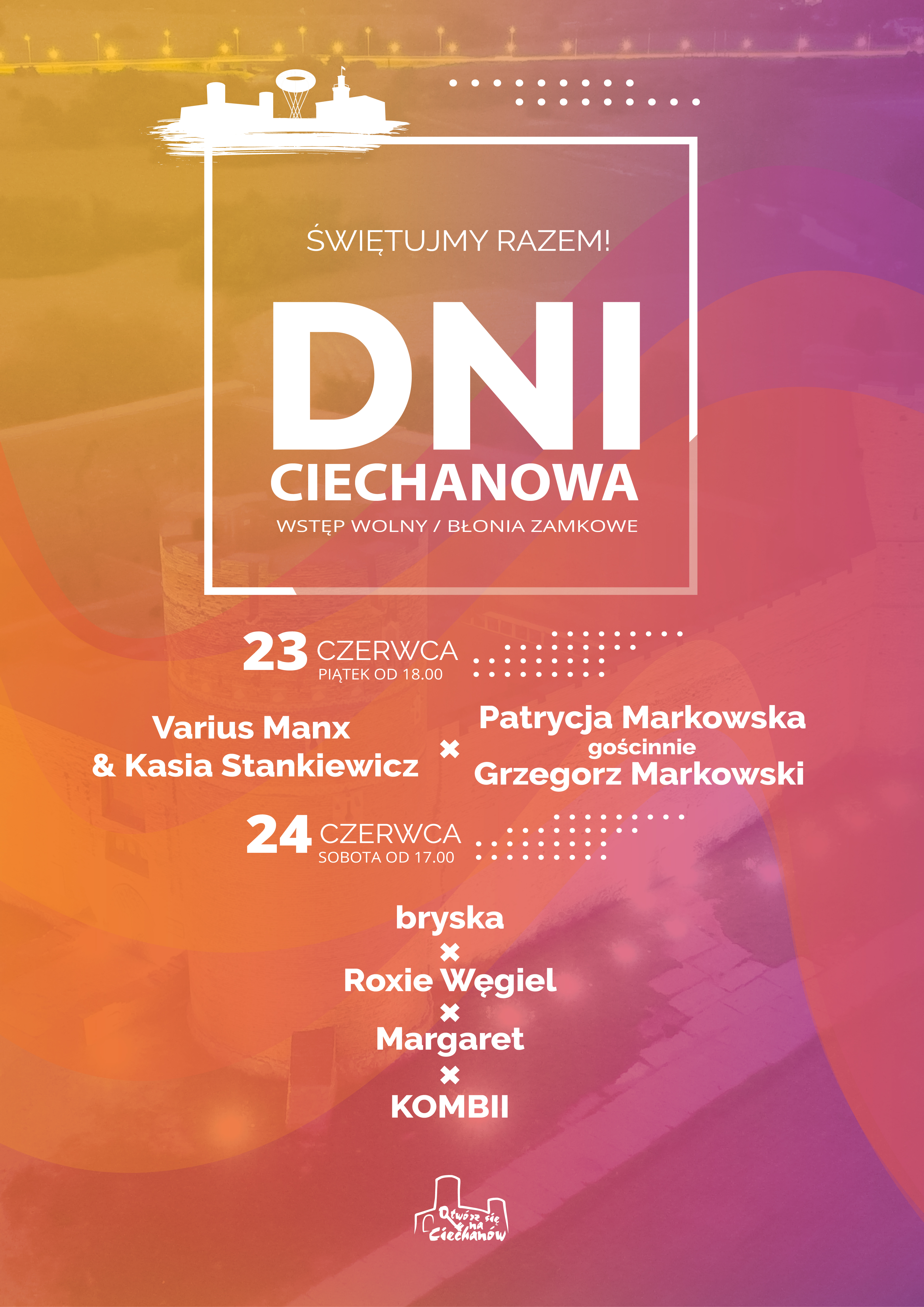 Miasto przygotowuje mocne otwarcie wakacji. Na błoniach zamkowych 23 i 24 czerwca wystąpią: Varius Manx i Kasia Stankiewicz, Patrycja Markowska wraz z Grzegorzem Markowskim, bryska, Roxie Węgiel, Margaret oraz Kombii. Podczas Dni Ciechanowa uzdolnieni uczniowie odbiorą od prezydenta miasta stypendia i nagrody za wybitne osiągnięcia artystyczne. Wstęp na koncerty będzie bezpłatny.