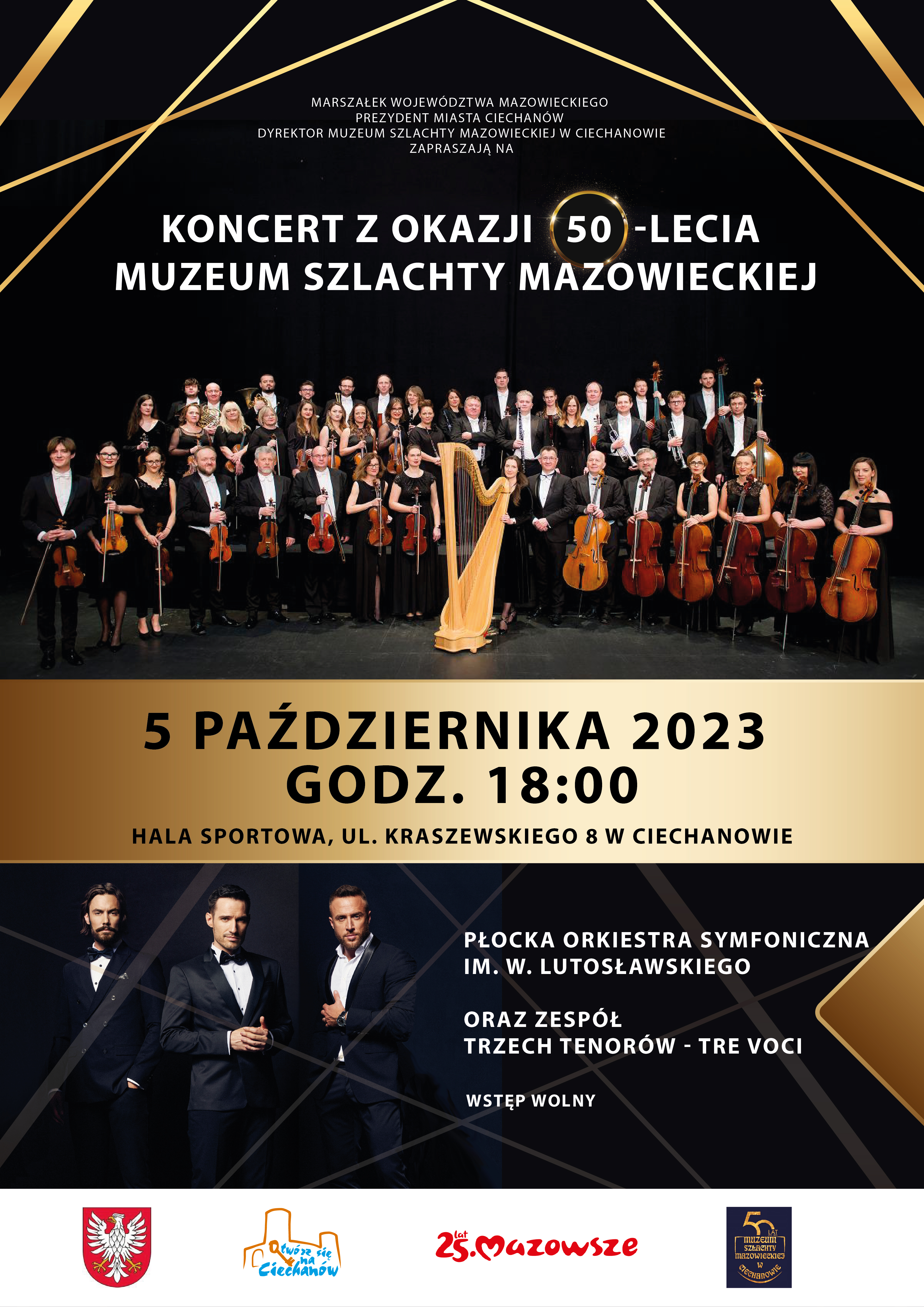 5 października w Ciechanowie wystąpi Płocka Orkiestra Symfoniczna im. W. Lutosławskiego i trzech tenorów Tre Voci: Voytek Soko Sokolnicki, Mikołaj Adamczak i Miłosz Gałaj. Wstęp na wydarzenie jest bezpłatny.