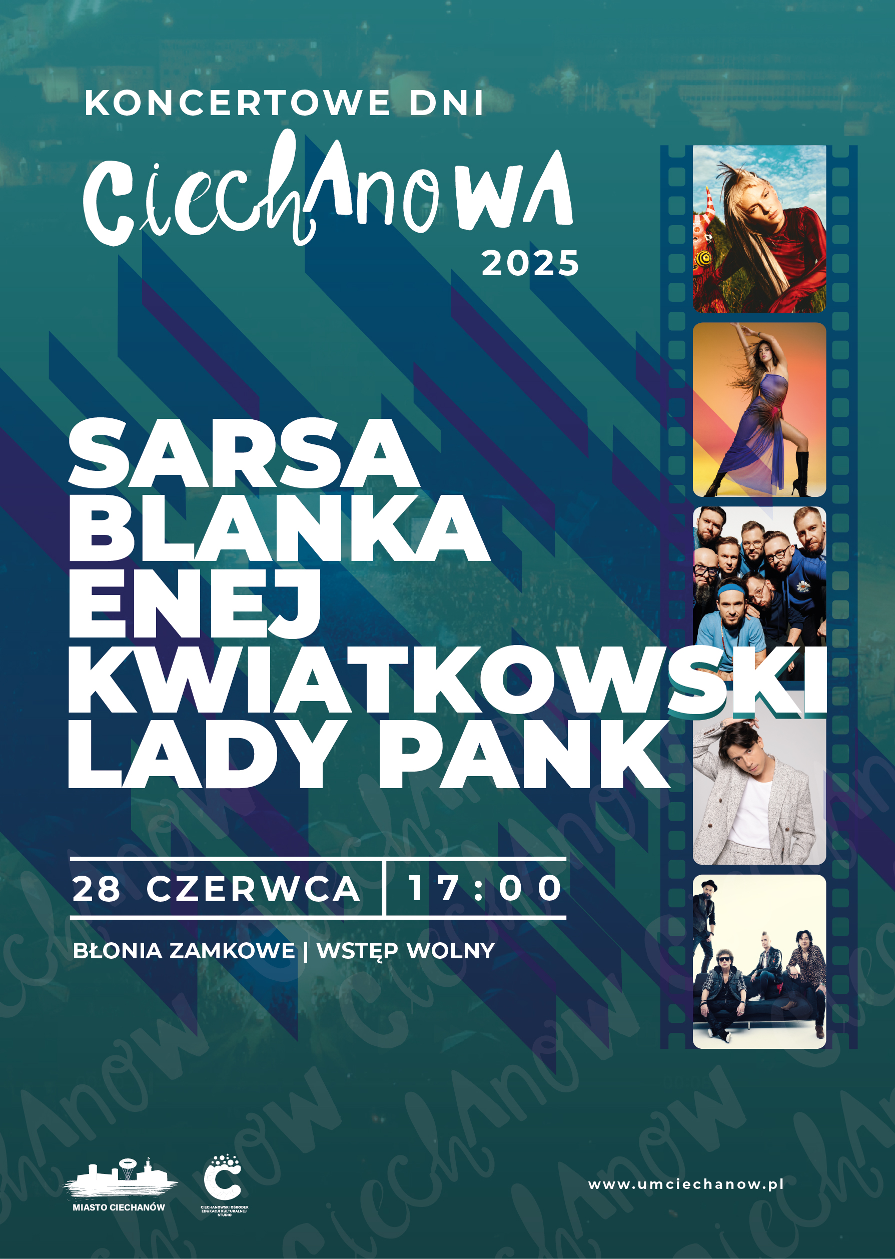 Miasto rozpocznie sezon wakacyjny serią pięciu plenerowych koncertów. 28 czerwca na zamkowych błoniach w Ciechanowie wystąpią: Sarsa, Blanka, Enej, Dawid Kwiatkowski i Lady Pank. Wstęp na wszystkie koncerty gwiazd polskiej sceny muzycznej będzie bezpłatny. Tego samego dnia uzdolnieni ciechanowscy uczniowie odbiorą od prezydenta miasta nagrody za wybitne osiągnięcia artystyczne.