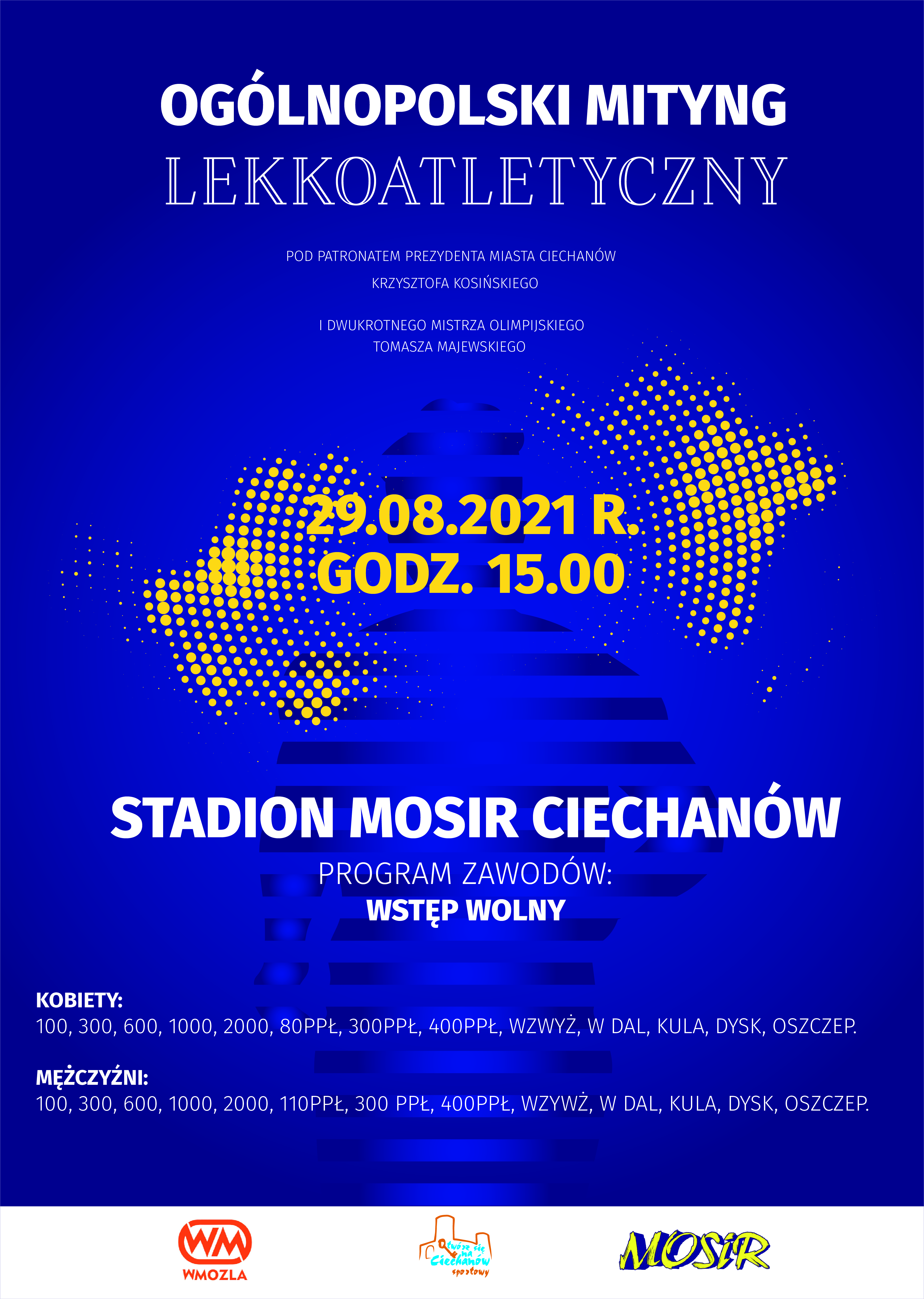 29 sierpnia na miejskim stadionie odbędzie się Ogólnopolski Mityng Lekkoatletyczny. Zawody zostaną zorganizowane pod patronatem Prezydenta Miasta Ciechanów Krzysztofa Kosińskiego i dwukrotnego Mistrza Olimpijskiego Tomasza Majewskiego.