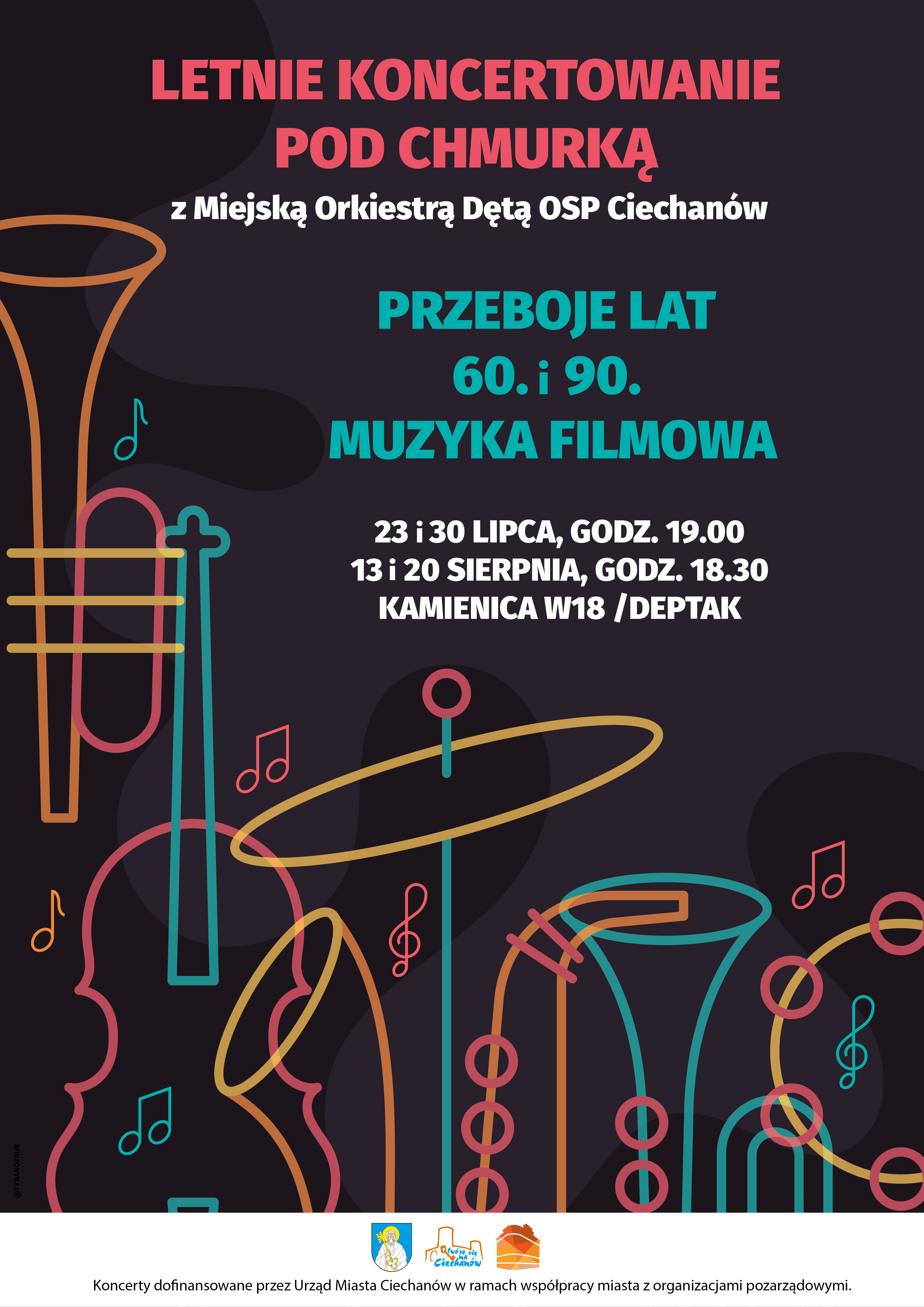 Miejska Orkiestra Dęta Ochotniczej Straży Pożarnej w Ciechanowie zagra w plenerze 23 lipca i 30 lipca o godzinie 19.00 i 13 sierpnia i 20 sierpnia godzinie 18.30.