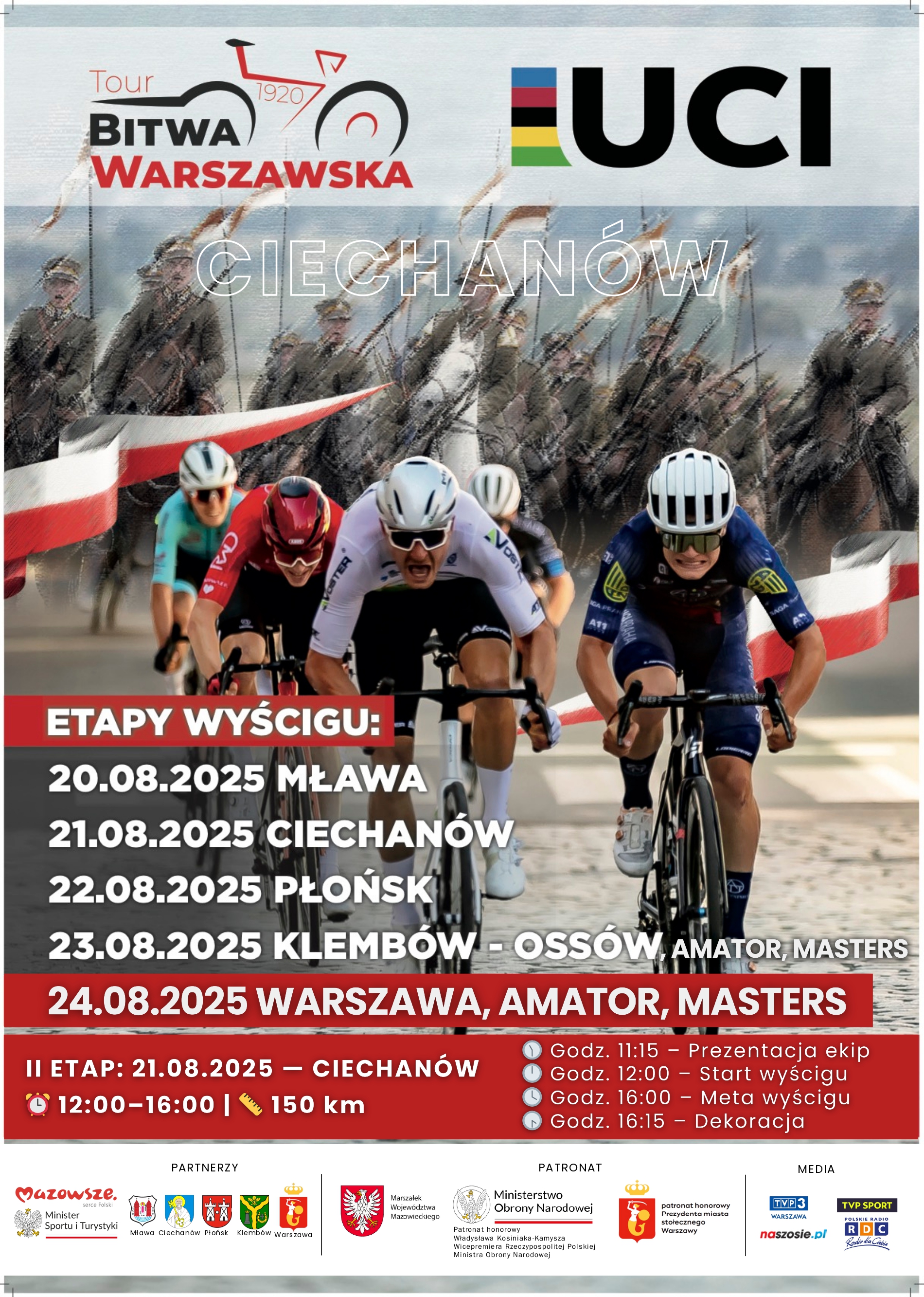 Zawody kolarskie „Tour Bitwa Warszawska” to wieloetapowy wyścig po Mazowszu, upamiętniający rocznicę bitwy z 1920 r. W tym roku rozpoczną się 20 sierpnia i potrwają pięć dni. Kolarze przejadą szosami przez miasta: Mławę, Ciechanów, Płońsk, a także dwie mazowieckie wsie: Klembów i Ossów. Wyścig zakończą wielkim finałem w Warszawie. Kibice na trasie będą mogli dopingować międzynarodowe ekipy kolarskie z Europy i nie tylko.