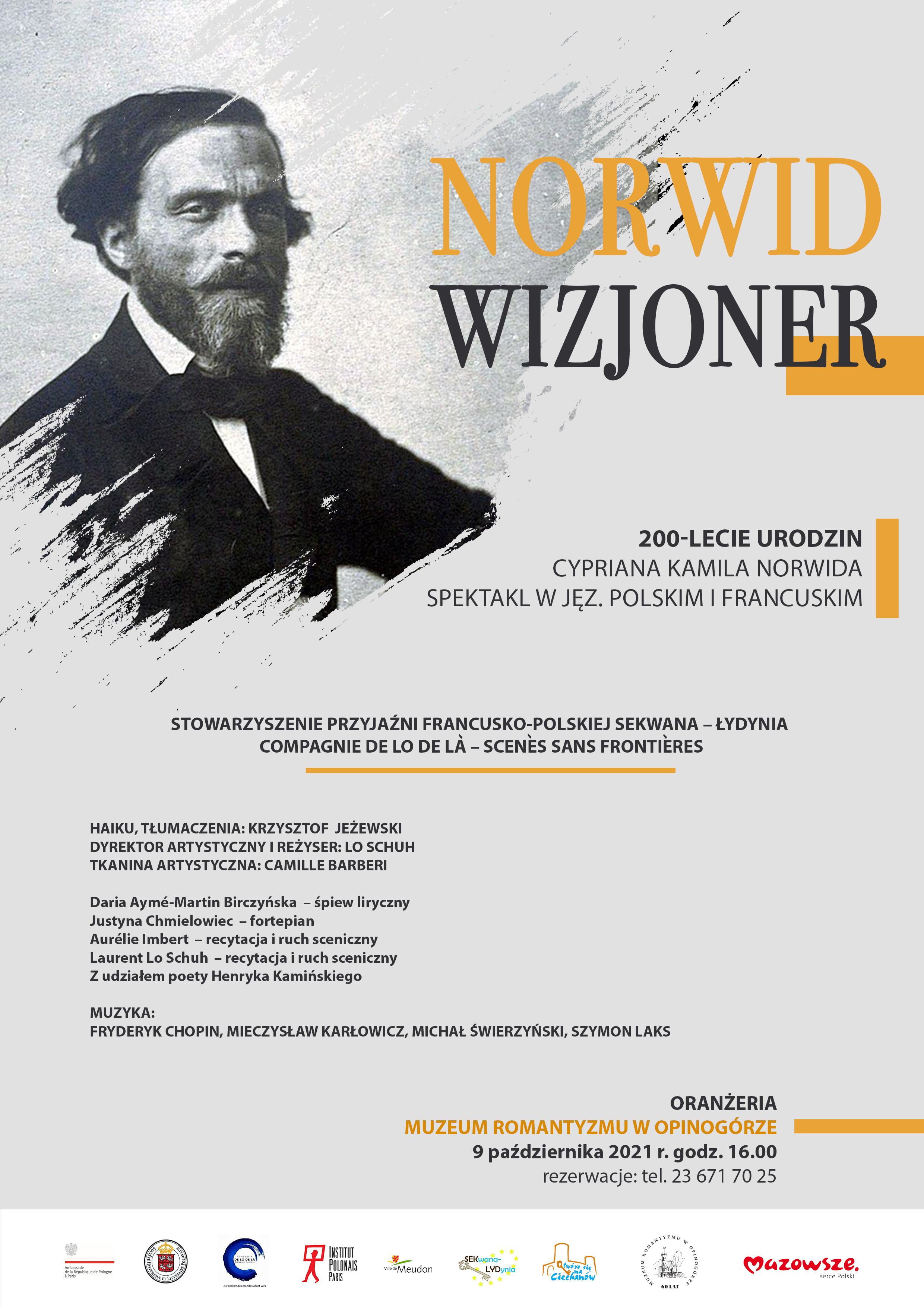 Projekt zostanie zrealizowany w ramach współpracy Ciechanowa z francuskim miastem partnerskim Meudon. Spektakl poświęcony romantykowi Cyprianowi Kamilowi Norwidowi będzie można obejrzeć 9 października w Opinogórze w dwóch językach: polskim i francuskim. Wstęp na wydarzenie jest bezpłatny, obowiązuje rezerwacja miejsc.