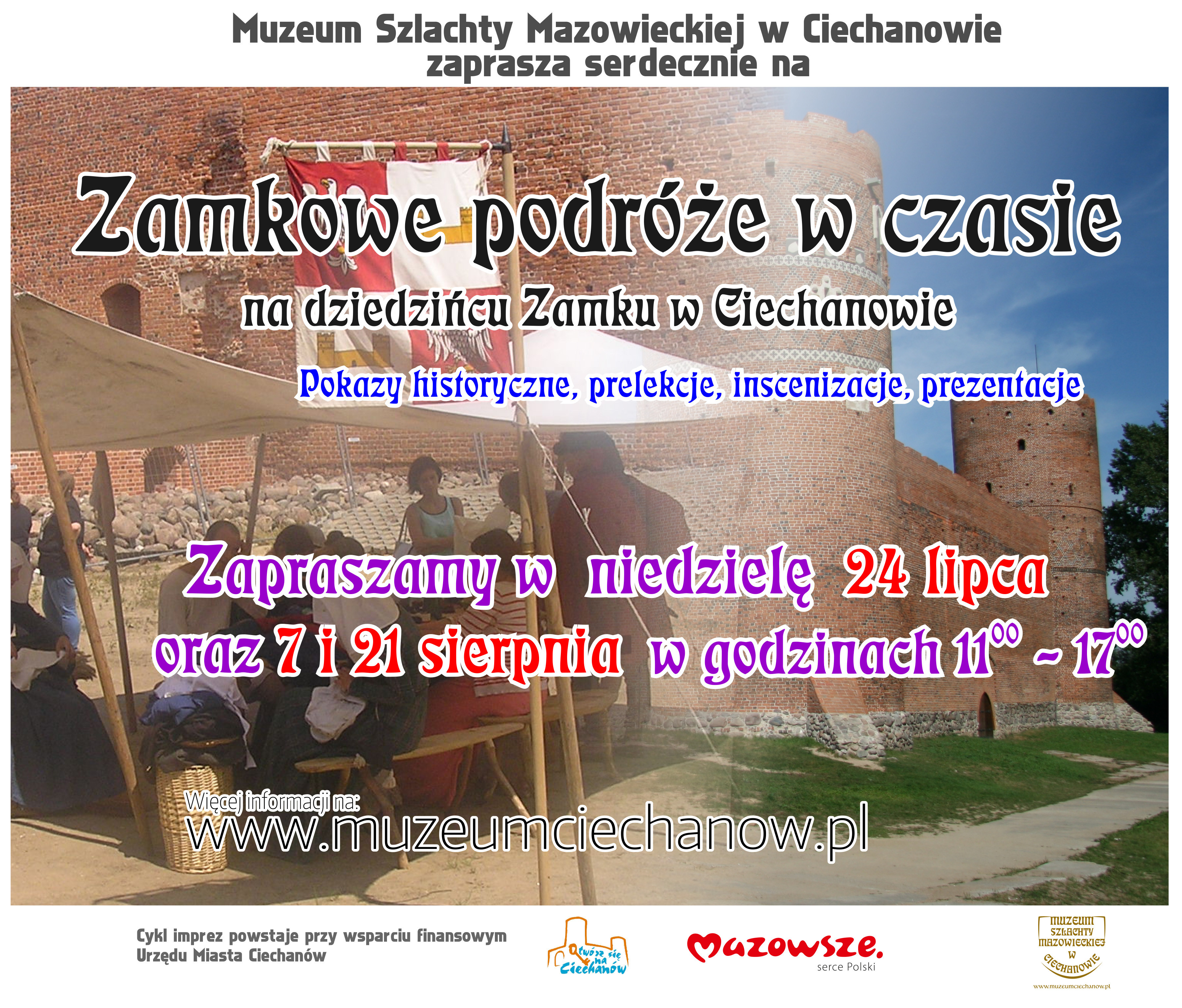 Na dziedzińcu Zamku Książąt Mazowieckich w czasie lata odbywają się imprezy, których celem jest popularyzacja historii i promocja Ciechanowa. W ich organizację włącza się miasto, wspierając finansowo Muzeum Szlachty Mazowieckiej w ich realizacji. W najbliższą niedzielę (24 lipca) będzie można przenieść się do epoki napoleońskiej. „Zamkowe podróże w czasie” to cykl, który będzie kontynuowany także w sierpniu. Zwieńczy go „Spotkanie z historią” – widowiskowa impreza z pokazem walk rycerskich.