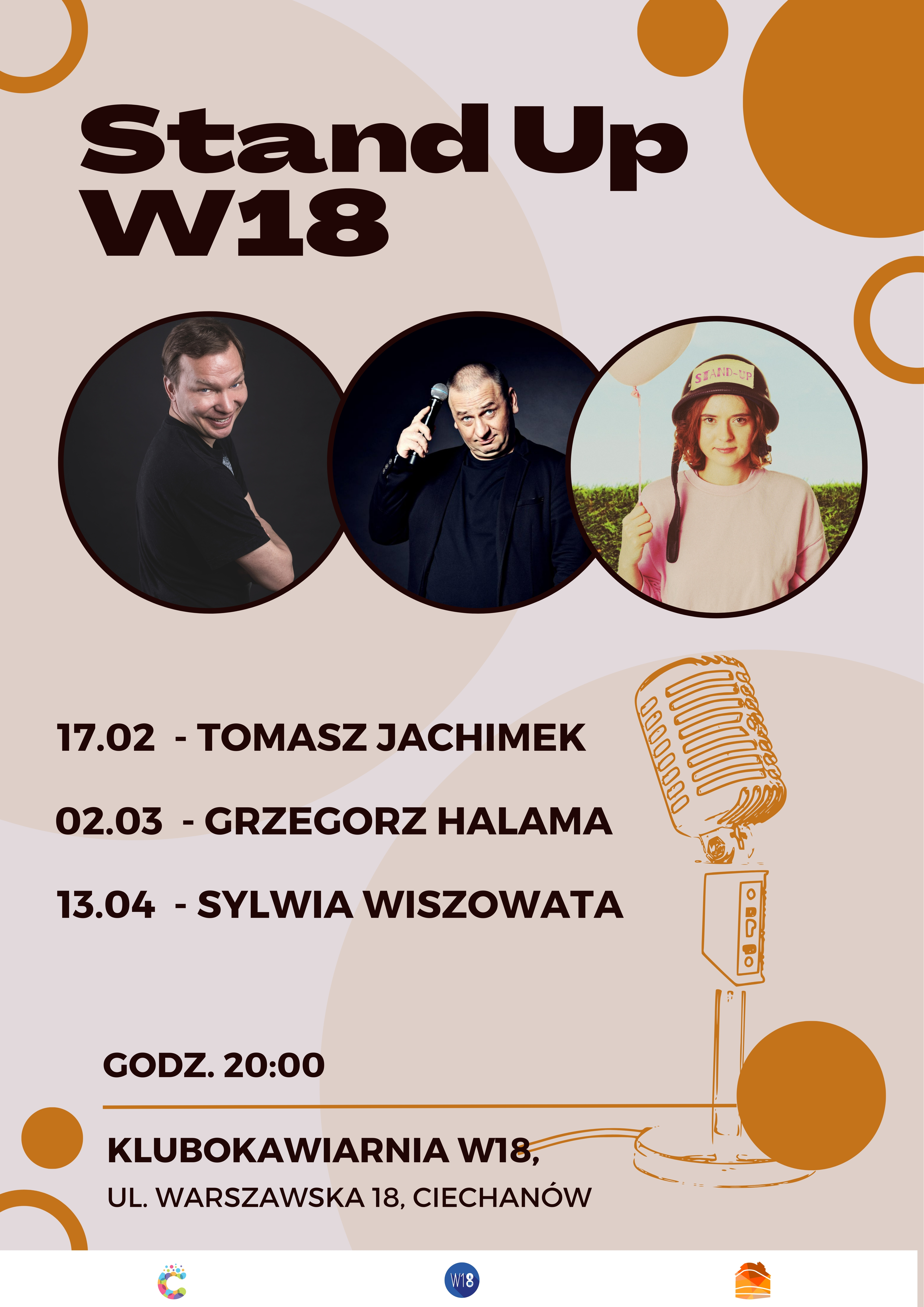 Wieczory komediowe rozpoczną się 17 lutego. W Kamienicy W18 wystąpi Tomasz Jachimek. Kolejny stand-up odbędzie się 2 marca (wystąpi Grzegorz Halama), a 13 kwietnia ciechanowian rozbawi Sylwia Wiszowata. Wszystkie spotkania będą rozpoczynały się o godz. 20.00.