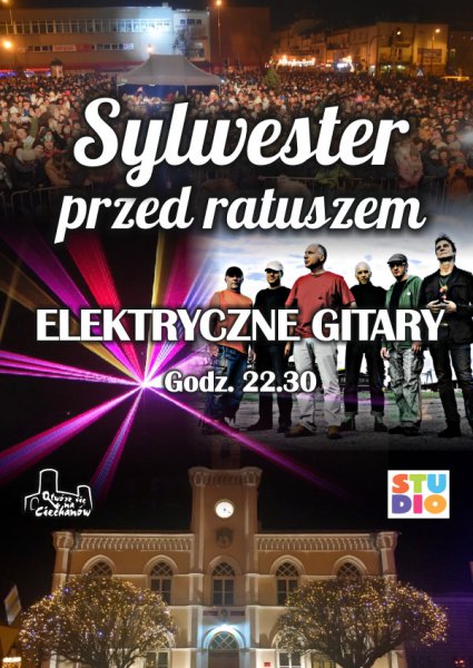 Podczas Sylwestra przed ratuszem w Ciechanowie zagrają Elektryczne Gitary. Miejski Sylwester rozpocznie się o godzinie 22.30. Zamiast fajerwerków, będzie pokaz laserowy.