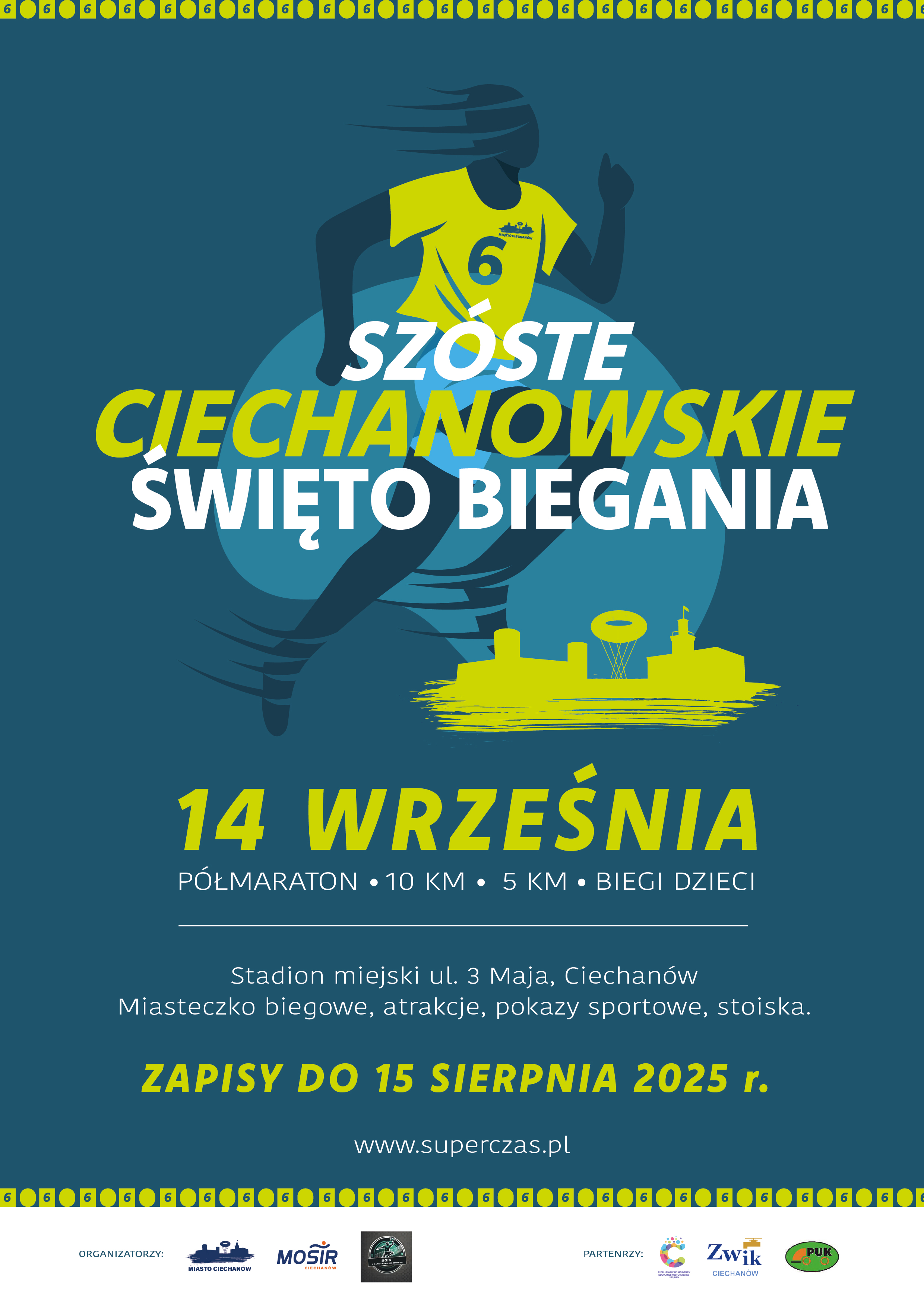Szósta edycja Ciechanowskiego Święta Biegania odbędzie się 14 września. Sportowcy i amatorzy przebiegną półmaraton ulicami Ciechanowa (21,095 km). Miasto organizuje też biegi na dystansach 5 km i 10 km oraz biegi dla najmłodszych. Najlepsi zawodnicy i zawodniczki biegów (półmaratonu oraz biegów na 5 i 10 km) zdobędą atrakcyjne nagrody finansowe sięgające 2000 zł. Nagrody pieniężne przewidziano również za drugie i trzecie miejsca w poszczególnych kategoriach. Tej samej wartości nagrody za I miejsce otrzymają najszybsza ciechanowianka i ciechanowianin.