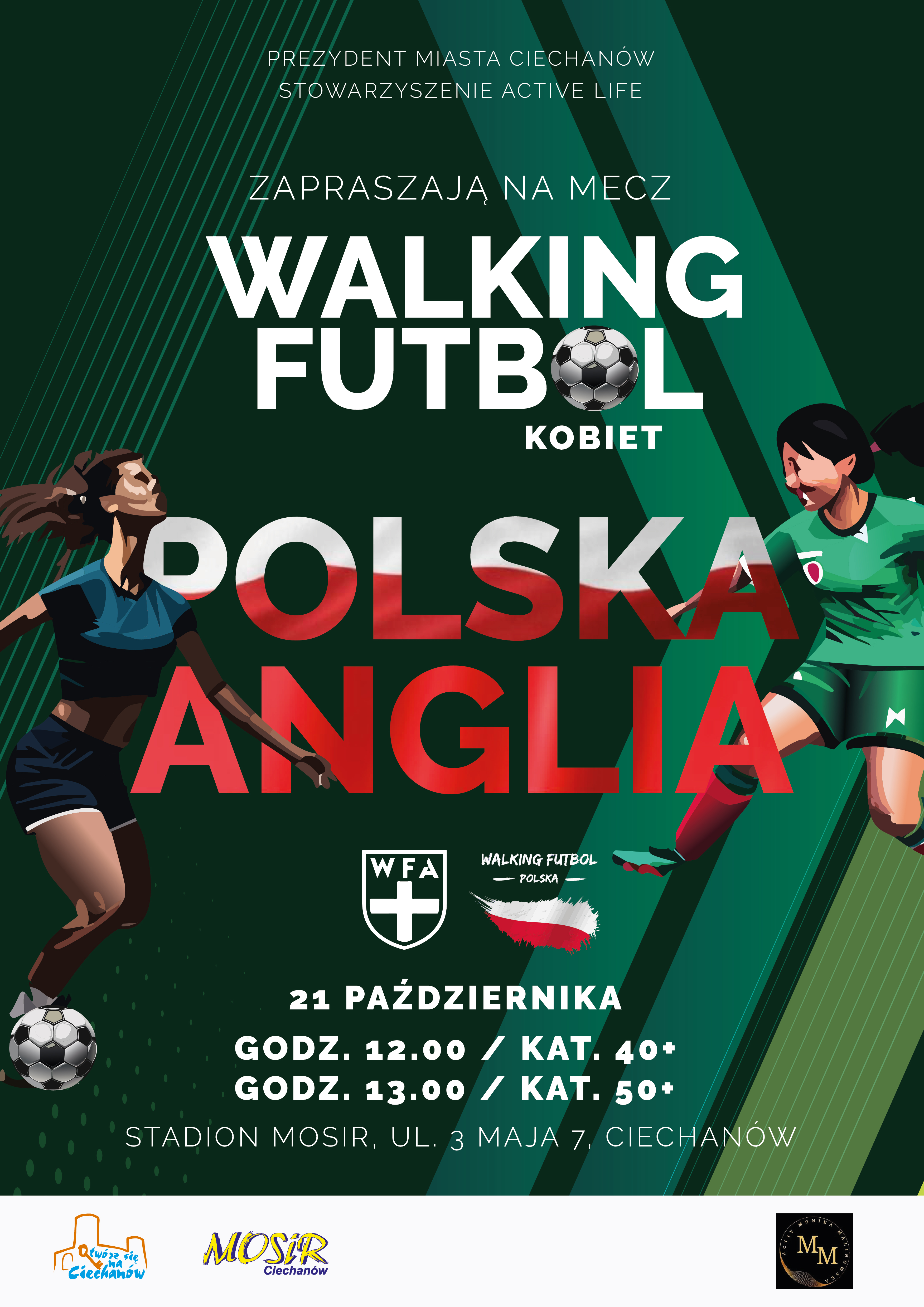 21 października (sobota) na stadionie miejskim będzie można oglądać towarzyski mecz Polska – Anglia „Wembley 50 lat później”. Zagrają w nim zawodniczki uprawiające Walking Futbol - odmianę piłki nożnej, która zdobywa coraz większą popularność na całym świecie. Od klasycznej gry w „nogę” różni się tym, że zawodnicy nie mogą biegać po boisku i zawsze muszą mieć kontakt przynajmniej jedną stopą z murawą. O godz. 12.00 zagrają osoby w wieku 40+, a o godz. 13.00 zespoły z klasyfikacji wiekowej 50+. Wstęp na wydarzenie jest bezpłatny. Przed meczem odbędzie się otwarty trening piłki chodzonej, w którym mogą uczestniczyć chętni seniorzy.